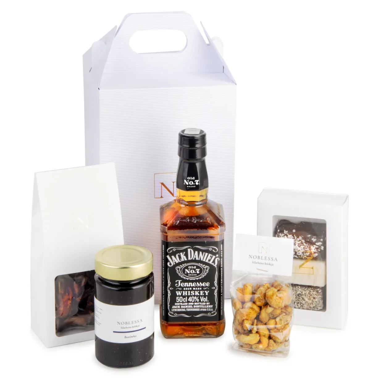 • Całość w eleganckim pudełku z białej tektury falistej z wygodnym uchwytem do wręczania.